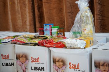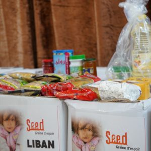 ? Urgence Liban : plus de 2 000 colis alimentaires distribués Début 2022, face aux conséquences directes de la guerre en Ukraine sur les difficultés d'approvisionnement en céréales du Liban, qui subit déjà une crise économique extrêmement grave, le fonds de dotation Seed a levé en urgence 60 000€. Grâce à cette somme, 2 126 colis alimentaires ont été distribués aux plus vulnérables : veuves, orphelins, personnes âgées, etc. Ils contiennent des produits alimentaires de base : riz, boulgour, farine, pois chiches, lentilles, huile végétale, halawa, tahina, thé, sel, sucre, etc.