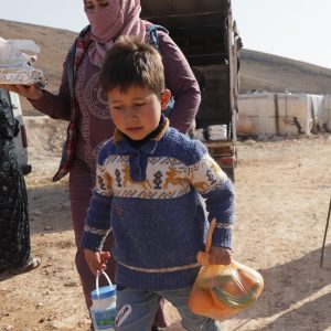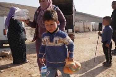 – achat de produits alimentaires de première nécessité : riz, boulgour, farine, pois chiches, lentilles, huile végétale, halawa, tahina, thé, sel, sucre, etc.