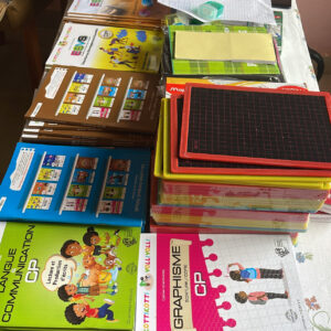 - – les fournitures scolaires nécessaires pour 600 élèves : sac à dos, manuels, cahiers, etc. (5 994€)