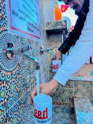 Travaux de construction réalisés de novembre 2023 à mars 2024 dans le village de Tighramat Ait Iktel, province d'Al Haouz, région de Marrakech (suite au séisme de septembre, il fallait attendre les autorisations locales) Profondeur du puits : 140 mètres / Capacité du réservoir : 30 tonnes Liste des étapes réalisées : construction du bassin, dimensionnement et choix du matériel, installation d’une pompe immergée, mise en place de panneaux solaires, raccordement du réseau hydraulique au douar par une conduite, et enfin, construction et équipement d'une fontaine. ? 80 foyers sont aujourd’hui alimentés en eau potable et une fontaine a aussi été construite pour les passages.