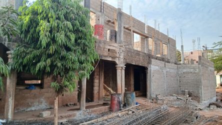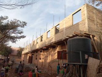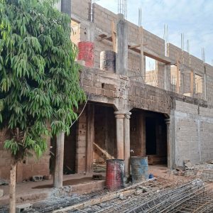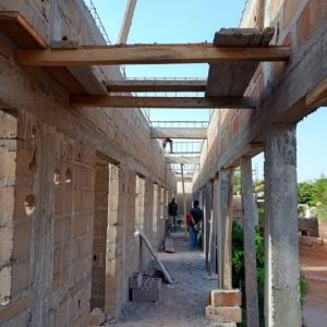 MAJ avril 2025 : trois ans après le financement de ce projet, les travaux du gros œuvre sont quasi terminés ! Il a fallu un certain temps pour obtenir les demandes d’autorisations puis lancer les travaux mais à présent, le projet prend forme. Grâce à vos dons, on espère que bientôt, les enfants n’auront plus à étudier dans constructions faites de tôles et de bric à brac mais dans un grand bâtiment sur deux niveaux qui a aussi été pensé comme un lieu de formation professionnelle pour les jeunes. Bonne nouvelle : ce projet était prévu au départ pour une capacité d’accueil de 300 élèves mais finalement, ce sera 350 !